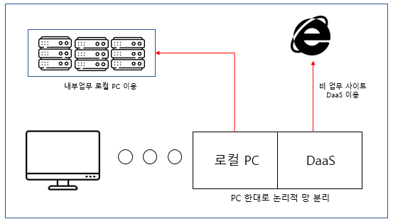 로컬 PC는 내부망(업무망)으로, 비업무 사이트 접근은 DaaS 기반 인터넷망을 활용하자는 취지에서 출발했다.